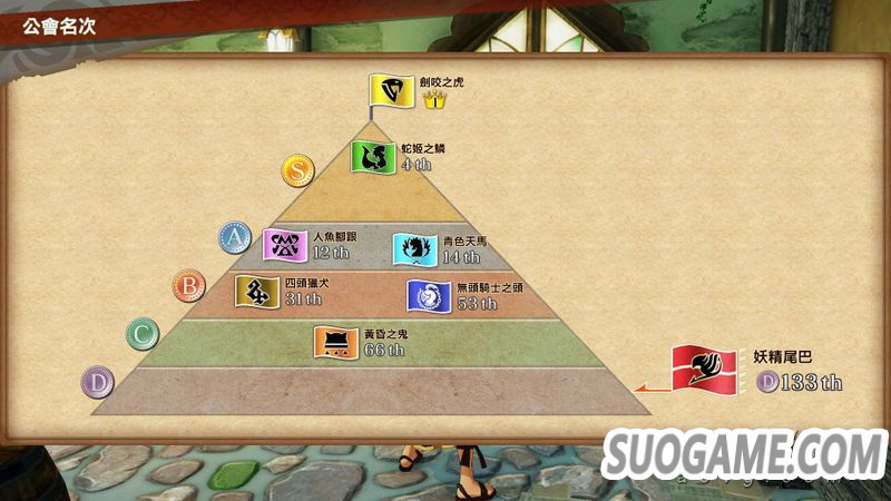 委托报酬中除了可获得金钱和道具外,也可获得公会的「名声」。随着公会的「名声」增加,菲欧烈王国内的「阶级」(排名)也会上升,藉由提升排名「公会阶级(D~S)」上升,便可进行更加困难的委托,收集来自人们的名声振兴公会,以菲欧烈王国内第一公会为目标吧。
