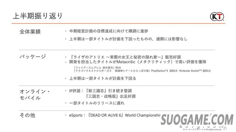 ·涩泽光:与任天堂合作开发的《火焰纹章 风花雪月》在全球发售并博得好评。手游《大航海时代6》在9月末开服。IP授权方面《新三国志》、《三