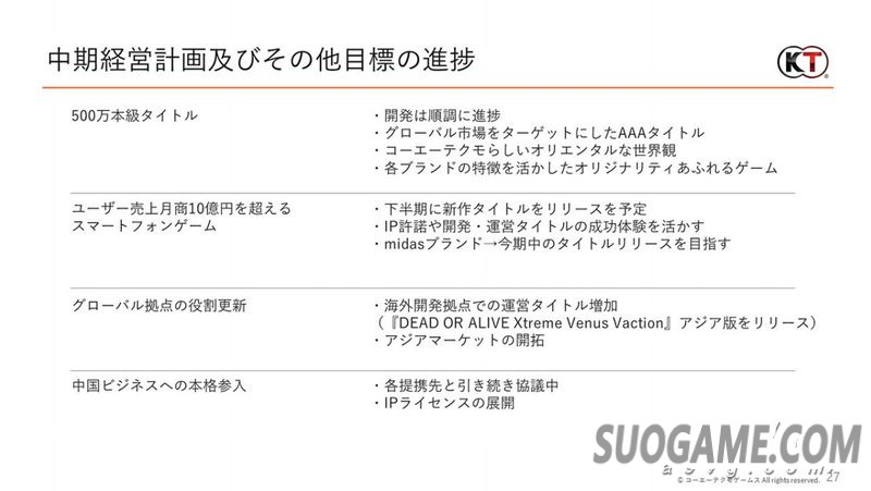 ·500万销量级别的AAA大作开发特别顺利,这将会是一款活用KT旗下各品牌特征的原创性作品,将采用东洋风的世界观。