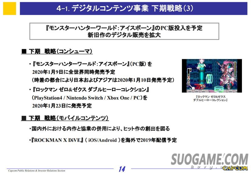 Iceborne》的PC版已经确定将要在2020年1月9日全球同步发售(因为时差亚洲地区是1月10日),另外《洛克人ZERO/ZX