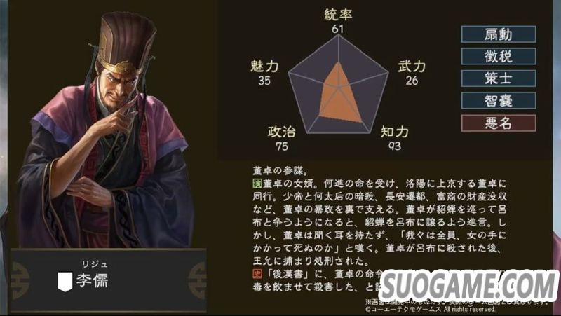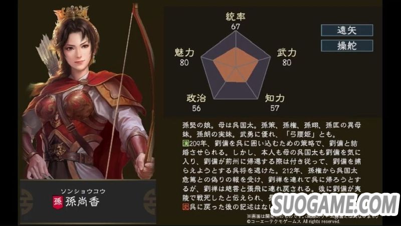 预定于2020年1月16日发售的PS4/PC《三国志14》在近期公开的一些演示中透露了孙尚香、李儒还有刘禅的能力数值。
