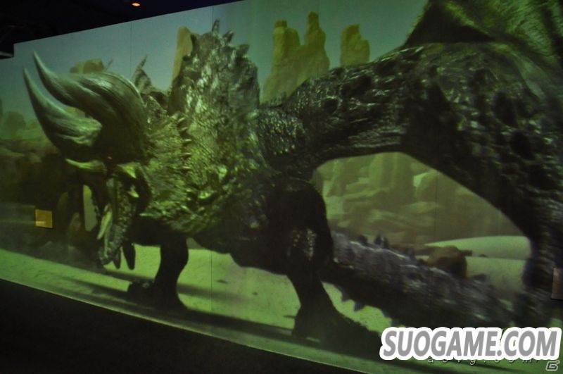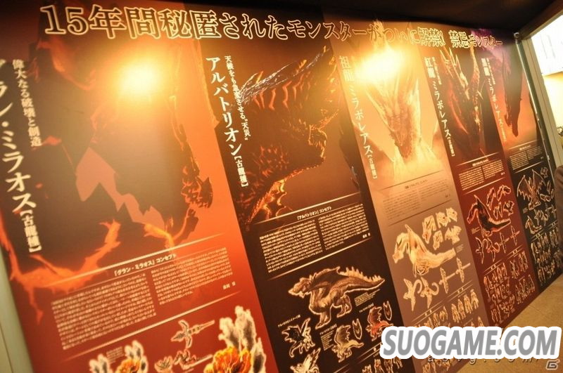 接下来一个为本次展览特别绘制的怪物体型比较图。现场还有体型比较影像,估计展后也会放出来给大家欣赏。