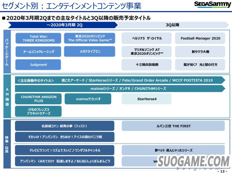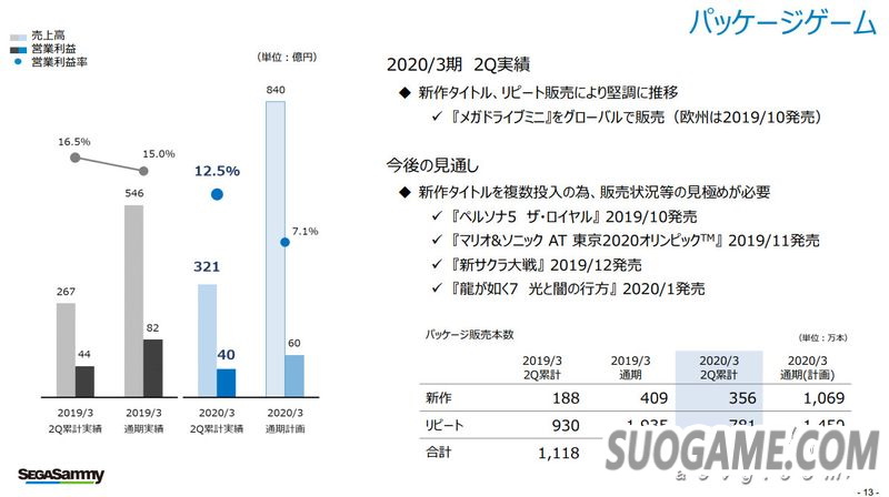 而下半年有《女神异闻录5 皇家版》、《马力欧与索尼克AT 2020东京奥运》、《新樱花大战》、《如龙7》、《足球经理2020》、《十三机兵防卫圈》等多款大作,相信业绩应该会特别不错。