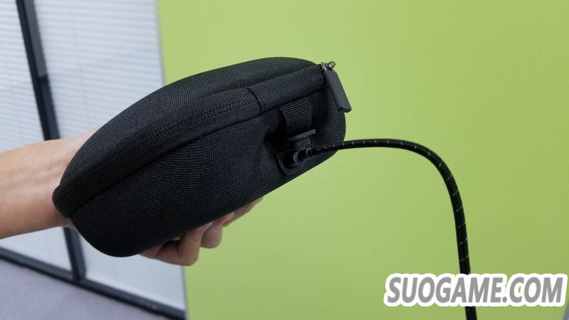 当然最有意思的细节还是收纳包上那个刻意留出的充电口,这个地方实际上是特地挖出的小洞,让充电线可以直接插进里面的充电底座中。当你把手柄和充电插座都放回收纳包里以后,直接把充电线插到这个接口上即可。不用把手柄拿出来也可以充电,在外出携带时非常方便。