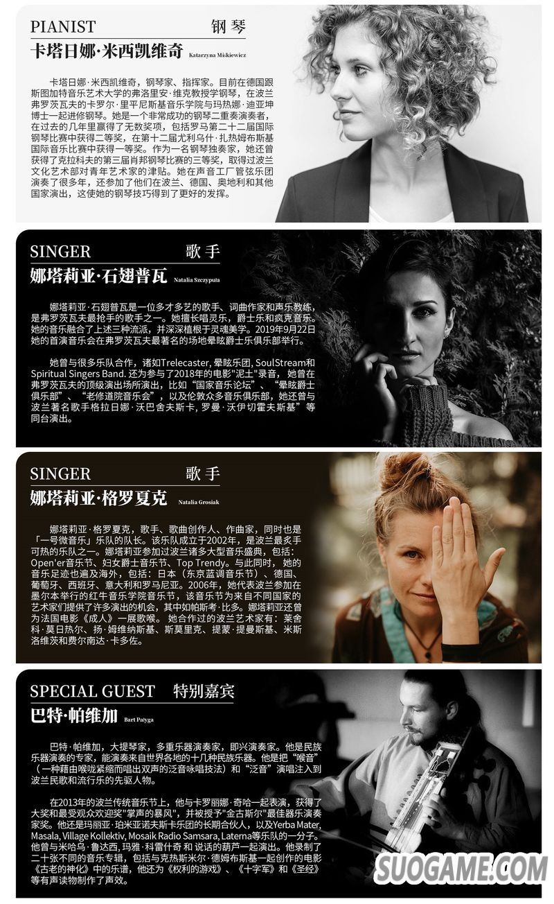 不只游戏音乐本身好,这次演出的阵容更是超级的豪华!为了呈现原汁原味的音乐体验,本次音乐会特别从波兰邀请了多位核心乐手到场来做最本色的出演!