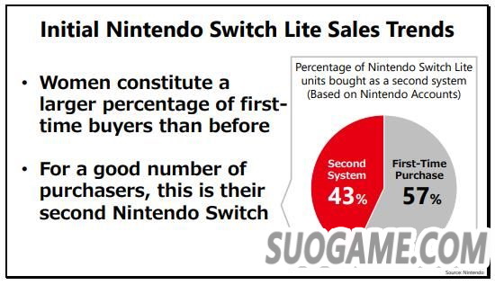 · Switch Lite吸引了更多女性用户,购买Switch Lite的人其中有43%已经拥有了NS。