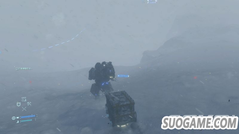 首先就是地形,比如走在一些崎岖的地形上时会减少山姆的体力,甚至会导致山姆跌倒、或是从山坡滑落下去,所以在找路的时候会下意识去寻找好走的路。按下R1可以对地形进行扫描,如果某段路走的人多了,就会行成一条小路,可以直接用肉眼进行辨认。同时地形还会根据天气发生变化,在雪山里自然不用说,即使是在平原上,雨后的泥沼也会让山姆容易滑倒。
