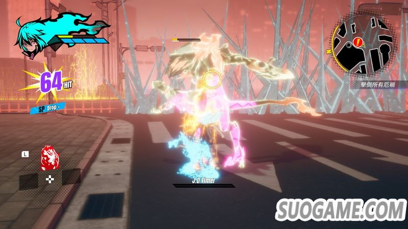 同特别多战斗系作品一样,在攻略的过程中通过击败敌人或是一些关卡中的设施,主角可以获得三种不同颜色的道具,分别对应了“HP、SP和D能量”,HP顾名思义即主角的生命值,若是战斗中归零则宣告游戏结束,SP在本作中占据了相对较高的位置,通过消耗SP主角可以释放出特别多爽快大魄力的必杀技,此外如果想要召唤守护神帮助攻击敌人同样需要消耗SP,在SP的基础上,本作还有一种类似子弹时间的设定,当在战斗中玩家通过冲刺成功闪避掉了敌人的攻击后,便会进入这个子弹时间的领域,游戏中叫做J.D.Timer,此时敌人的攻击动作会变得迟缓,通过击打敌人还会掉落大量的SP,如果掌握时间恰当的话,几乎可以达成全程必杀连击,让战斗的感觉变得爽快特别多。