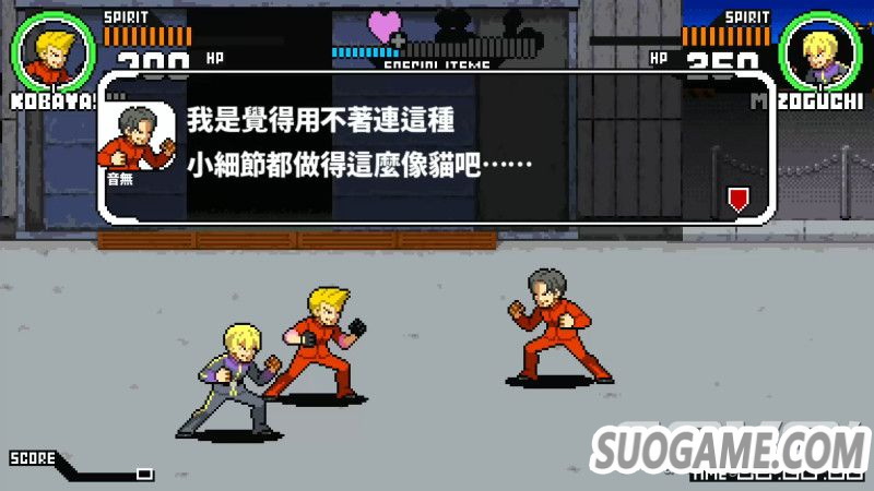 玩家在操作主角小林的同时也能使用同伴,有能使用回复技能或召唤双龙兄弟等支持型特殊角色沟口,以及拥有强大战斗能力和必杀技的战斗型特殊角色国夫。游戏内所有剧情都能透过2人游玩模式进行,因此能和家人朋友们一起开心地游玩游戏。