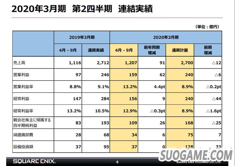 One版),但因为去年同期有大作推出,加上老游戏未能持续热销,因此同比减收。下半财年有超级大作《最终幻想7 重制版》,问题应该不大。