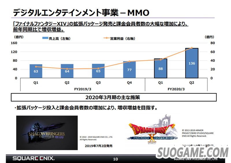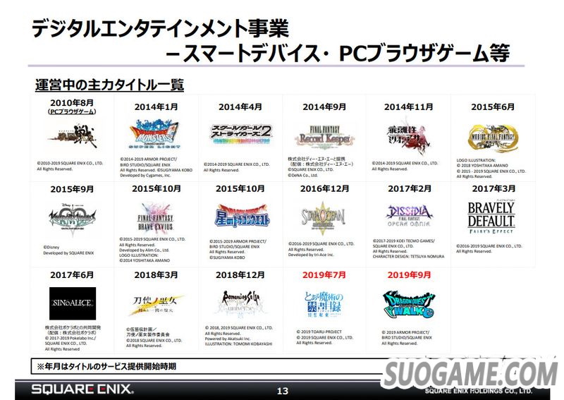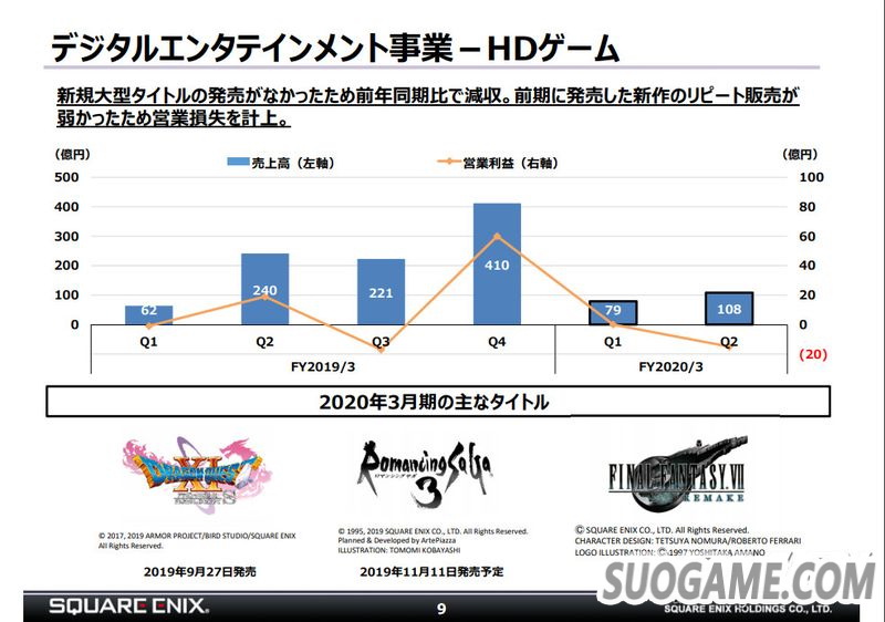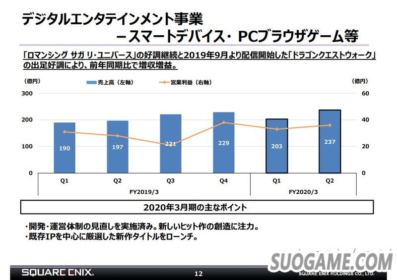 ·手游页游方面《浪漫沙迦 宇宙》以及9月推出的《勇者斗恶龙WALK》表现都不错,因此增收增益。