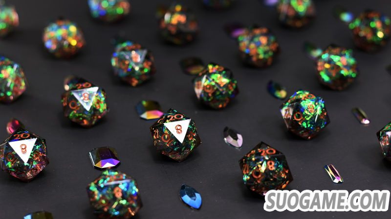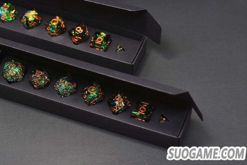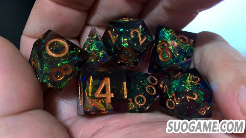 外媒kotaku收到了一套“黑翡翠”配色的骰子,对它们进行了近距离的展示。目前众筹还在继续中,你可以点击这里参与。