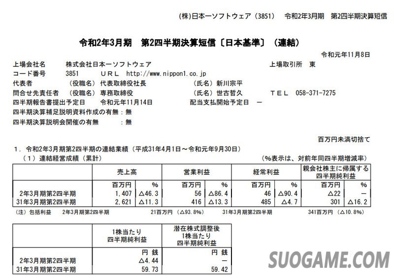 日本一公开19-20财年半年财报,营业额14.07亿日元同比减少46.3%,营业利益0.56亿日元同比减少86.4%,虽然不是特别好看但比原本的预期1.62亿赤字还是要好特别多。