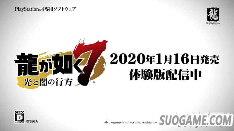 SEGA Games Co., Ltd.计划于2020年1月16日(周四)推出的《人中之龙》系列最新作──PlayStation?4专用游戏《人中之龙7 光与暗的去向》(以下简称《人中之龙7》),近日新公开长版剧情预告片,该片配乐为中田ヤスタカ和湘南乃風联手打造的歌曲《一番歌》。
