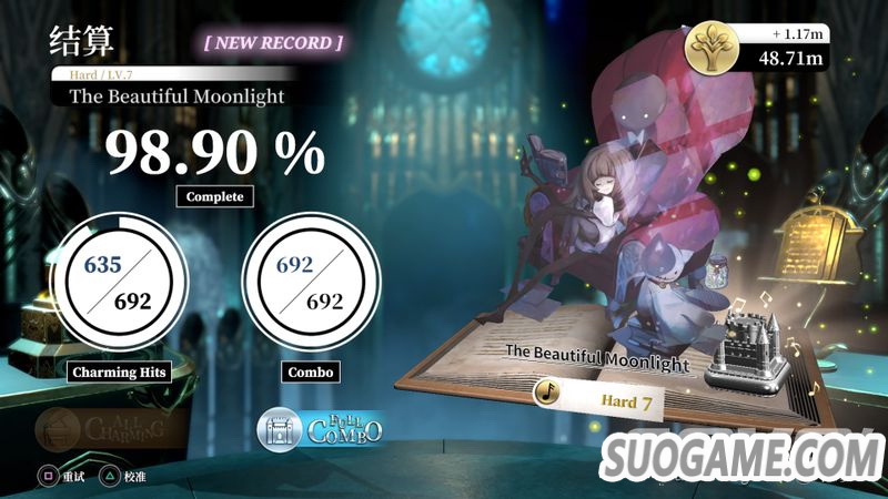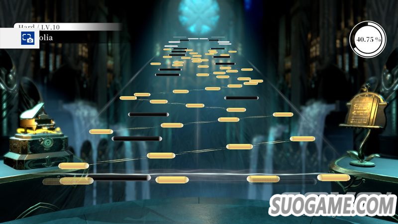 游戏演奏的操作和其它下落式音游类似,←↑→□△○这六个按键对应了屏幕上的六个位置,L1和R1键也等同于↑和△两个键,遇到金色音符时朝对应方向推左/右摇杆均可,如果熟悉《DJMAX》的玩家应该会比较轻松上手。虽然按键不如触摸屏来得直观,但熟悉了之后爽快感依然十足。本作的VR模式需要使用两只PS Move控制器来操作,探索时利用控制器当做指针来对小女孩发出指令前往某处和调查物品,演奏时则是模拟弹奏钢琴的感觉,但考虑到长时间佩戴PSVR会对身体造成不小的负担,建议游玩本作还是以TV模式为主,如果你有PSVR设备的话不妨体验一下也可以。