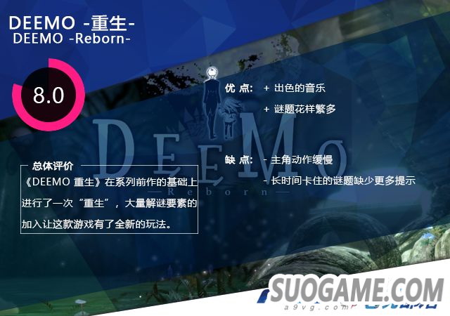 《DEEMO Reborn》在系列前作的基础上进行了一次“重生”,雷亚游戏出色的音乐品质自然不用多说,大量解谜要素的加入也让这款游戏有了全新的玩法,但如果你只想玩音游不想玩解谜的话可能会有点难受,因为本作乐谱的获得大多数是和解谜相关联的。当然,如果你既喜欢音游又喜欢解谜的话就赚到了,因为只用花一份游戏的钱就能买到两种不同的玩法。