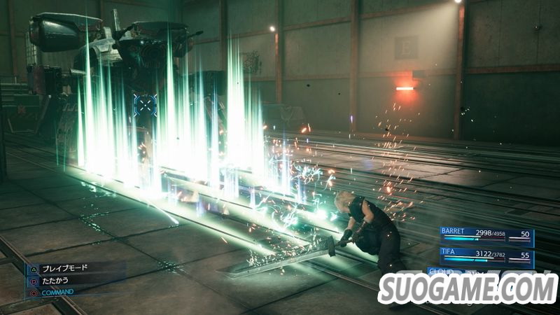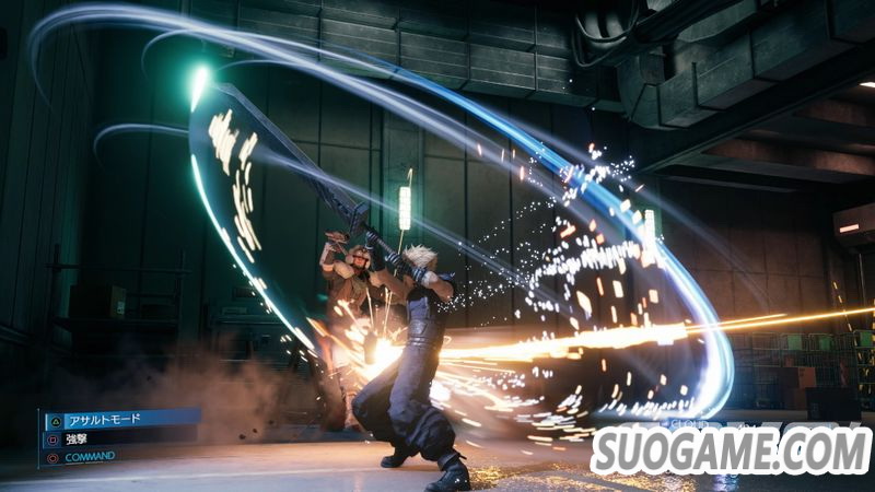 只要按下□的「战斗」,克劳德就会以剑发动近距离攻击,连按按钮会形成连击, 长按□则会使出圆形大範围攻击。