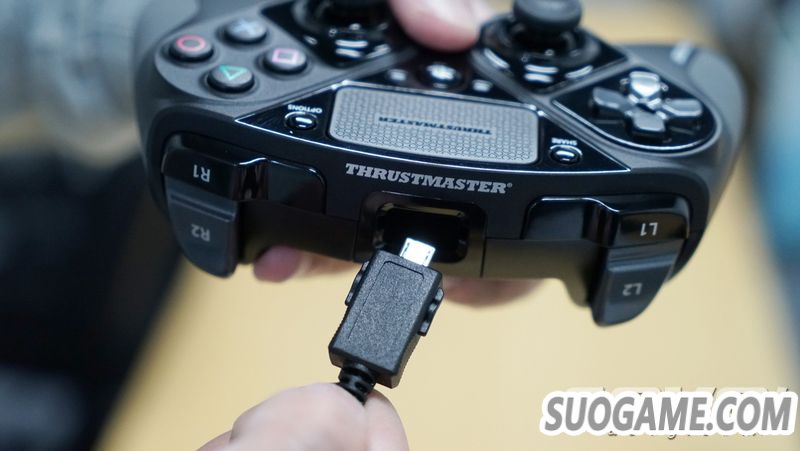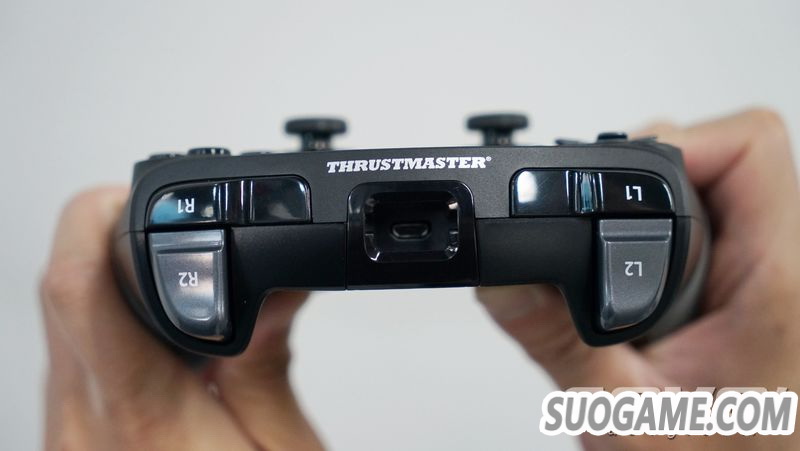 手柄顶部的布局比较标准,连线处依然使用Micro USB接口,比较特别的是接口部位是凹进去的一个坑,使用包装中自带的连接线可以插进去并卡紧,不易松动。这种对于连线处的严格标准好像在反复提醒着我们这是一款有线手柄。
