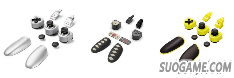 至于扳机键的替换,老实说默认的扳机键我有点玩不转,它特别像切成一半的Xbox扳机键,特别短,像我这种手大的人食指特别容易扣到边角部位。而银色套件包里的那款扳机键(如图左1)显然是给FPS游戏准备的,活脱脱真正的手枪扳机,有一个标准的往上翘起的弧形尾巴。
