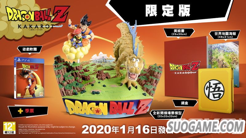 备受全球玩家热烈期待的《七龙珠Z 卡卡洛特》繁体中文版除了将推出一般版、含游戏软体及季票的PS4豪华版以外,另推出收录丰富内容的限定版供玩家选择: