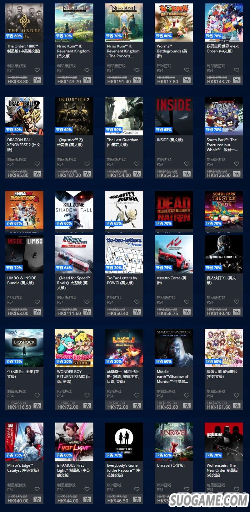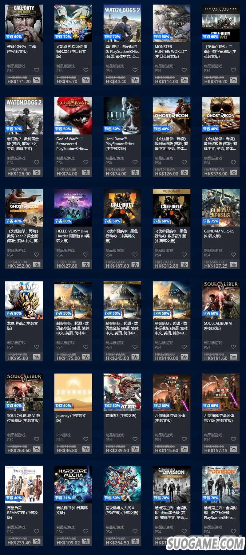 以下就是本次优惠的全部打折游戏,配图显示为非PS+会员折扣,PS+会员折扣更高: