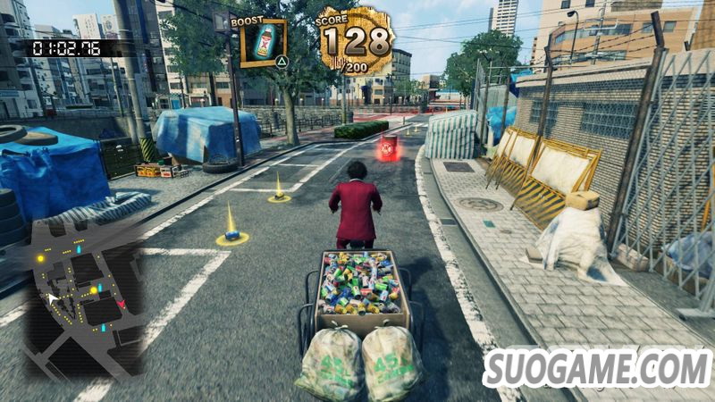 难波介绍了捡空罐的工作后便能游玩「捡罐求生」, 这是骑三轮车收集空罐的娱乐场所。只要在限制时间内,收集目标数量以上的空罐并抵达终点,就算通过游戏。要是撞到垃圾车、其他流浪汉或汽油罐的话,会失去大量的空罐, 请务必小心。
