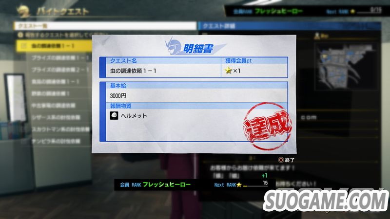 ▲如果任务是要交付道具或打倒特定敌人,需要向窗口汇报才算完成,并能获得报酬。 汇报窗口除了广尾的公司外,也存在于便利店「POPPO」等横滨的各种场所。