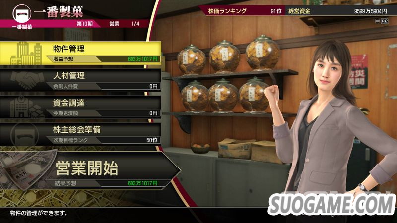 「经营公司」 这个新要素,是成为「一番制果」的新社长,通过管理不动产及人才、向金融机关融资、 进行营业活动, 让公司逐渐成长。