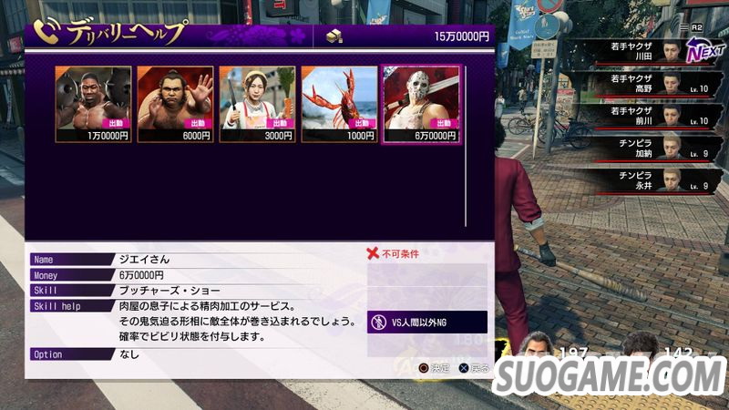 ▲在随叫随到画面中,会显示角色的特征、召唤的金额、无法召唤的条件等项目。随着支线剧情的完成,能够召唤的角色将逐渐增加。效果和价格因角色而异, 变得能召唤之后请记得试试看。当然,角色的价格越高,能期待的效果也越高。 请赚取更多金钱,以便召唤强大角色。