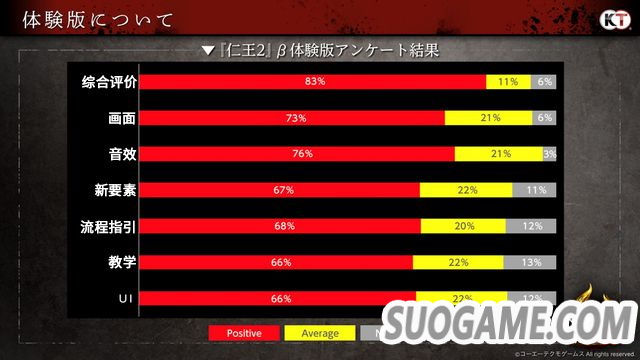 《仁王2》在上个月进行了Beta测试,在今日公布了本次测试之后的问卷调查以及今后需要进行的调整项目。同时还公布了本作的PS商店特典「魑魅别扣」与《仁王2 豪华版》限定特典「木灵别扣」,装备的话可以获得魑魅与木灵的祝福。本作预计将要在2020年3月12日发售,登陆PS4。