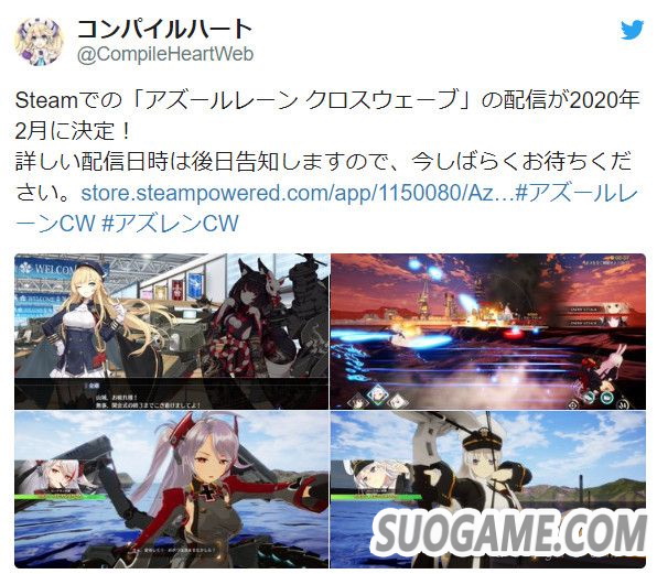 CompileHeart及IDEA FACTORY宣布PC版《碧蓝航线Crosswave》将于北京时间2020年2月发售,游戏支持繁体中文语言。另外PS4的繁体中文版预定于2020年2月13日推出,估计PC版具体发售日也会在这附近。