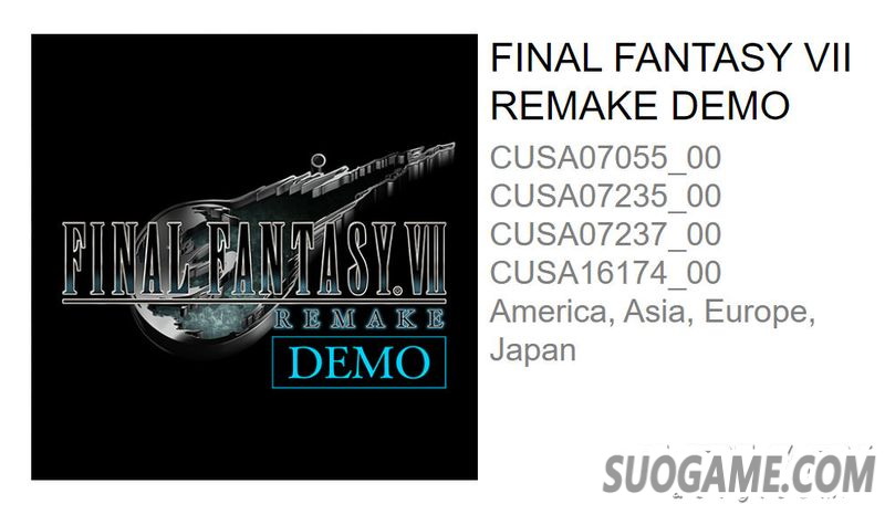 此前泄露《生化危机3 重制版》的PS商店内容监视网站中出现了《最终幻想7 重制版》的体验版,看样子亚洲各服、日服、欧美服都会有的样子。或许近期就会上架。
