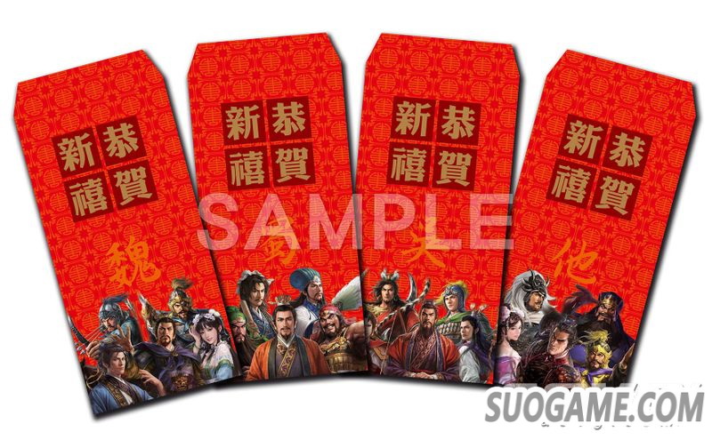 历史仿真游戏「三国志 」系列最新作『14』 (Windows?/ PlayStation?4)将于北京时间 2020 年 1 月 16 日(四)发售,因应即将到来的农历新年,这次特别为购买首批实 体版的玩家们准备各势力红包袋,红包袋上除了有了曹操、刘备、孙权、吕布外, 更搭配其知名武将,精心设计值得玩家收藏,就让『三国志 14』陪着大家过好年!