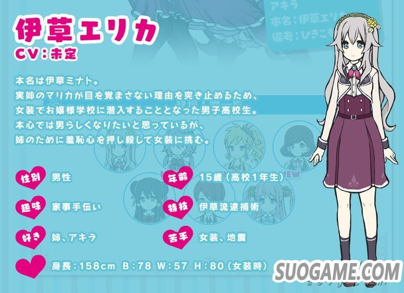 《僕姬计划》为比较少见的女装大佬题材ADV游戏,讲述主角伊草艾利卡(男)为了调查姐姐被卷入的事件女装潜入百合爱学园,在这所学校里可爱就是正义,因此主角要与其它的美少女竞争谁最可爱。本作立项时曾面向公众调查要不要真的制作,看来反响还不错...本作将于北京时间2020年4月23日发售,定价6980日元,登陆PS4/Switch平台。