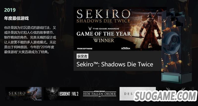 · 年度最佳游戏:《只狼:影逝二度》