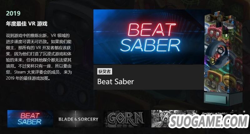 · 年度最佳VR游戏:《节奏光剑》