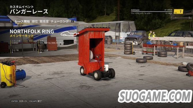 这是《撞车嘉年华》其中的一个DLC,这个DLC加入了一个名为“蜜罐子(Honey Pot)”的赛车,这是一个简易厕所造型的赛车,驾驶员必须坐在马桶上来完成比赛,没有安全带的陪伴,也不知道比赛中途会不会颠出shi来。
