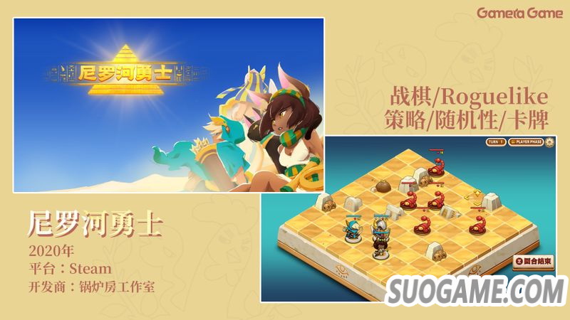 《尼罗河勇士》,一款兼具了战棋、卡牌、Roguelike等多重元素的策略游戏,玩家将操作3名各具特色的作战单位一路闯关,并通过掉落的卡牌强化战力。虽说玩法是以战棋为本,但游戏节奏却是出人意料的明快哦~