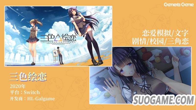 这个应该不需要再跟大家介绍了?国产Galgame名作《三色绘恋》,2020年在Switch上也能玩到了!100万字剧本+全程语音+100张CG,带你回到学生时代,再经历一次高中恋爱生活(好像有什么不对?)。