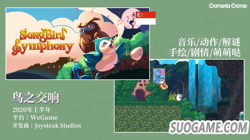 来自新加坡团队的创意之作《鸟之交响》,玩法上结合了平台跳跃和音游两大类型,画风可爱,音乐好听,但别看外表萌萌哒,想要打出完美combo也是特别考验音游功力的!《鸟之交响》将于今年推出WeGame版,另外国行Switch版也在计划中。