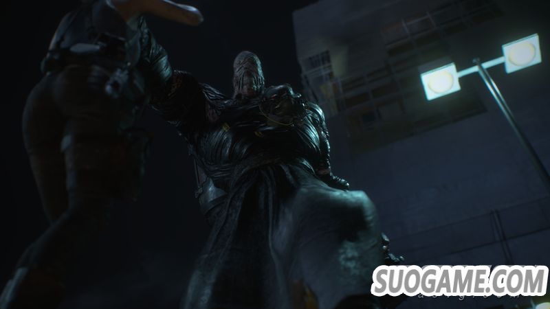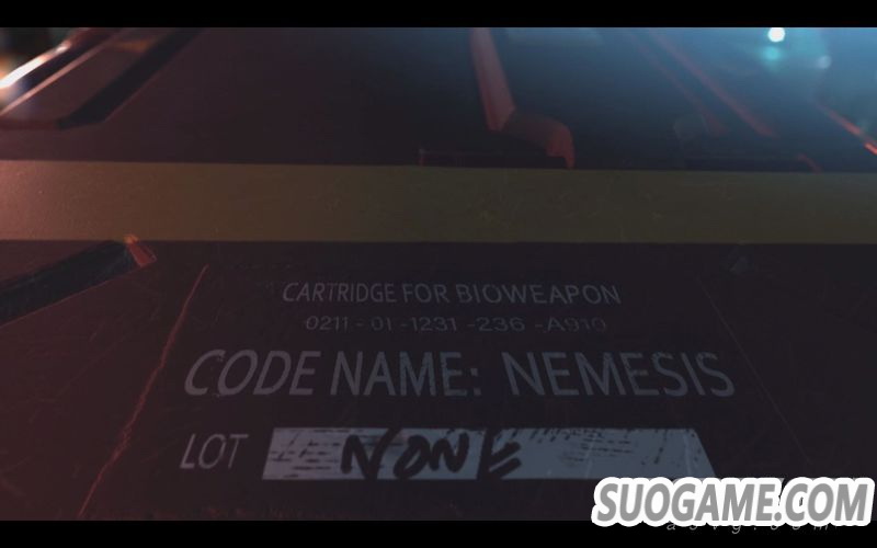 被关在厚重货柜内的是黑衣巨人──Nemesis。保护伞公司以生物兵器暴君为基础,改善了其不稳定性,最终製成此款新型兵器。大幅提升的智能使之能够在自行判断下进行任务,而增强的自我再生能力,亦令它无论受到任何伤害仍能继续作战。
