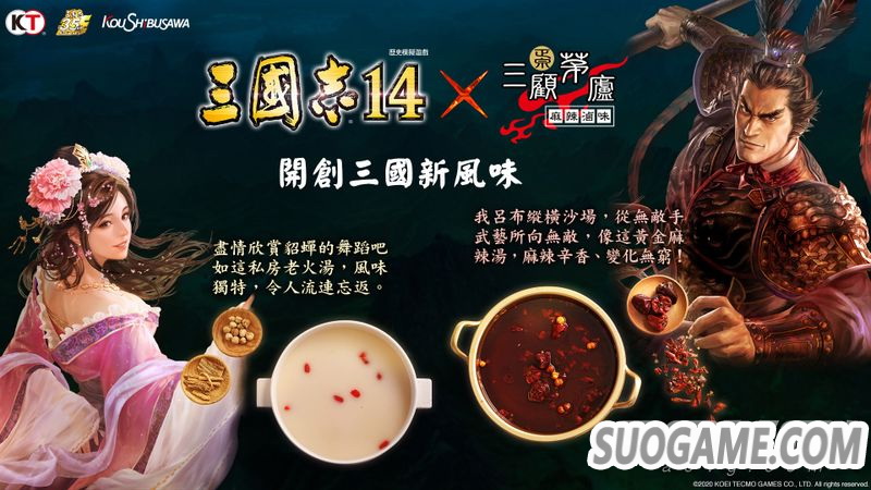 『三国志14』与正宗麻辣卤味『三顾茅庐』跨界合作,即日起至『三顾茅庐』全台营业据点,将可看到『三国志14』的相关布置物,除此之外更举办合作活动,让各位玩家们一手游戏一手滷味,一试成主顾!