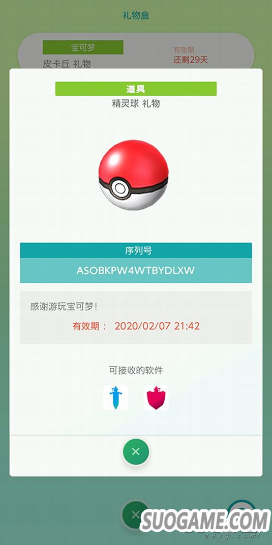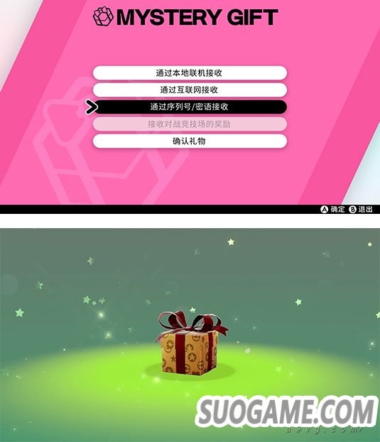 诸如“宝可梦的道具” 等一部分礼物,可以用《宝可梦 HOME》接收“神秘礼物”的序列号,并在《宝可梦 剑/盾》内使用收到的序列号。