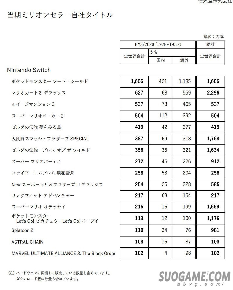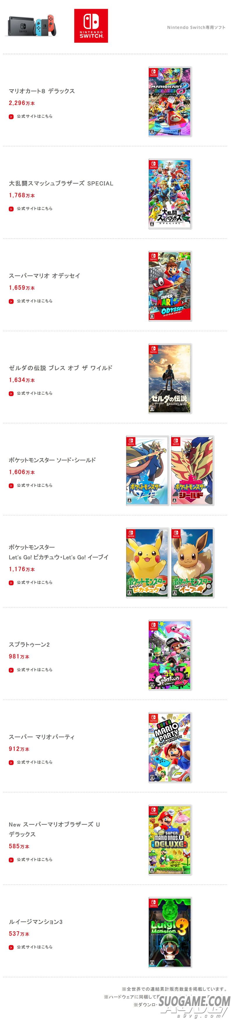 Switch主机累计销量达到5248万台、软件3亿1065万份。
