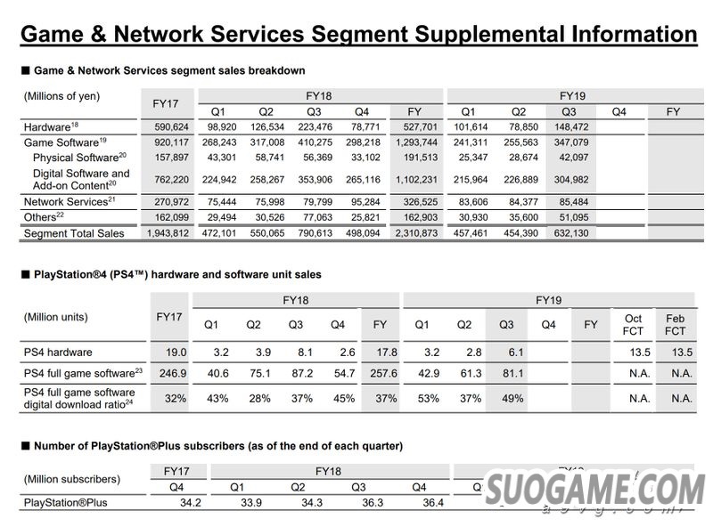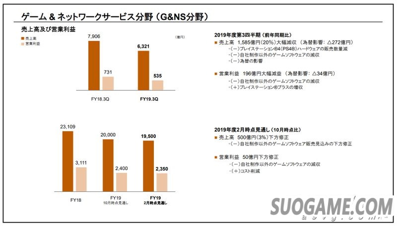 其中以PlayStation业务为主的游戏与网络服务部门营业额15440亿日元、营业利益1922亿日元,较去年同期有些下滑。主要原因是PS4硬件及软件的销售都出现明显下滑,不过PS+会员仍在增长。