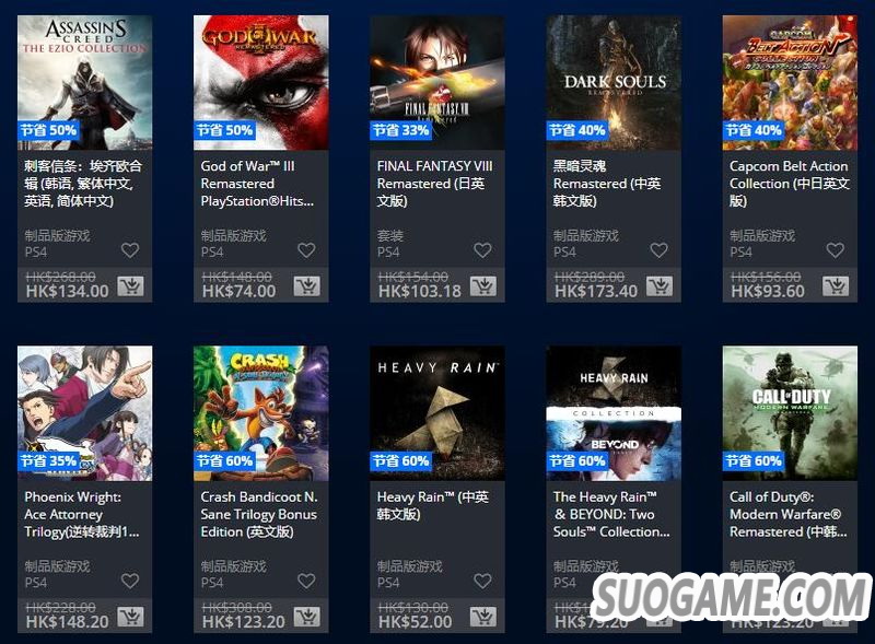 港服PS商店开启“经典游戏优惠”活动,约107款作品进入折扣列表,内容以重制类型作品为主,包括:《刺客信条 艾吉奥合集》、《战神3 重制版》、《黑暗之魂 重制版》等,截止日期到2月20日。