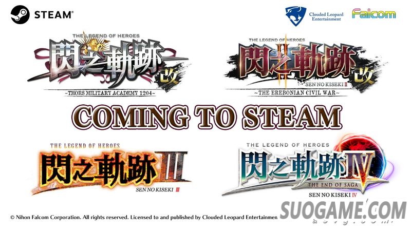 云豹娱乐与Falcom宣布,《英雄传说 闪之轨迹1:改》《英雄传说 闪之轨迹2:改》《英雄传说 闪之轨迹3》《英雄传说 闪之轨迹4》中文版都将登陆PC(Steam)平台。发售日目前均未定。