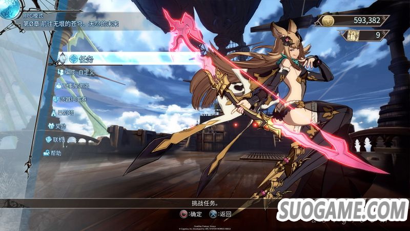 虽说《碧蓝幻想VERSUS》是一款格斗游戏,但进入游戏打开菜单排在第一个的是“RPG模式”,可见开发者也希望大家一上来能先从这里入手。这是一个类似横板过关的玩法,并融入了大量RPG元素。你可以培养角色、收集武器、强化装备技能、挑战各种任务,内容分量十足且既可以线下双人游玩又可以线上联机,说实话单独拿出来成为一个游戏都可以有。