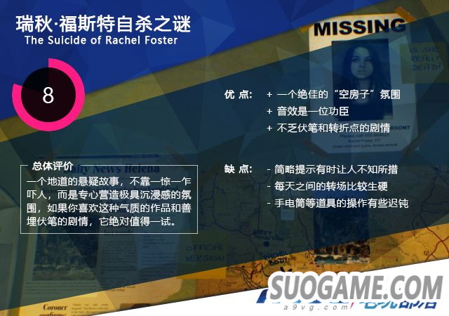 A9VG为《瑞秋·福斯特自杀之谜》评分:8/10,完整评分如下: