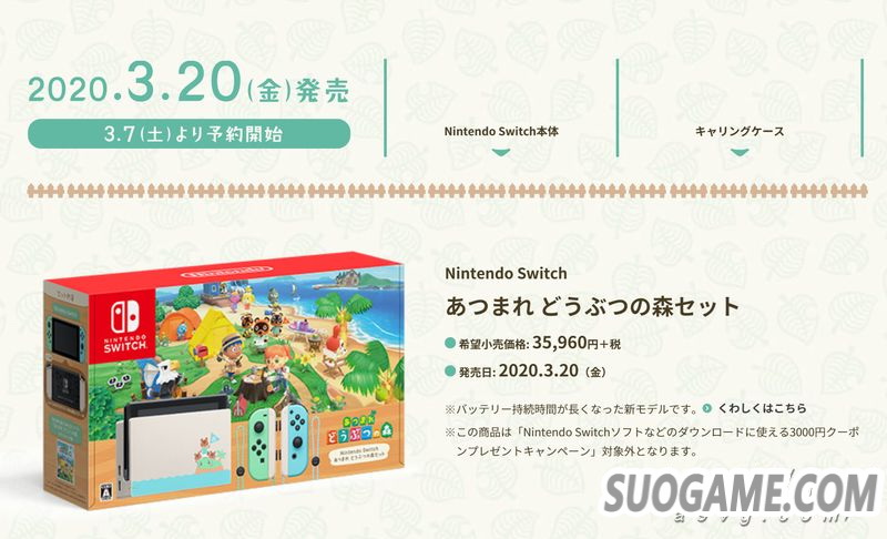 任天堂宣布日版《集合啦!动物森友会》限定版Switch主机套装将会改在3月7日开始预约,3月20日发售不变。